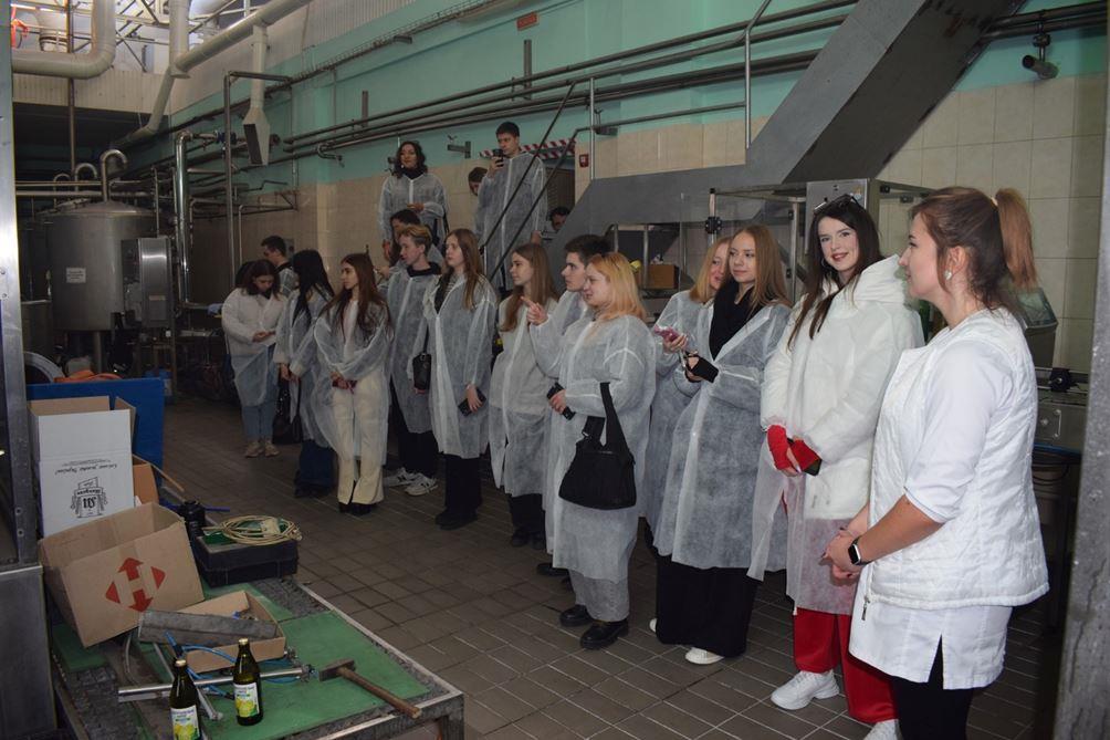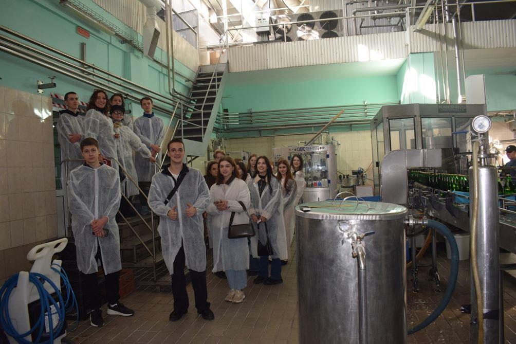 Студенти та викладачі мали можливість побачити практично весь технологічний процес – від виготовлення солоду, затирання зернопродуктів у заторних чанах, утворення сусла у фільтраційних чанах, яке потім подається у сусловарний котел, у якому разом з хмелем його кипʼятять до відповідної густини, далі освітлюють, охолоджують і воно поступає в циліндрично-конічні танки (ЦКТ) до розливу. У цеху розливу – можна було побачити розлив питної води та безалкогольних напоїв у скляну тару та ПЕТФ-пляшки.