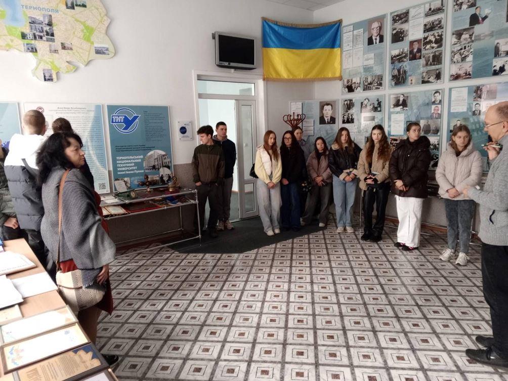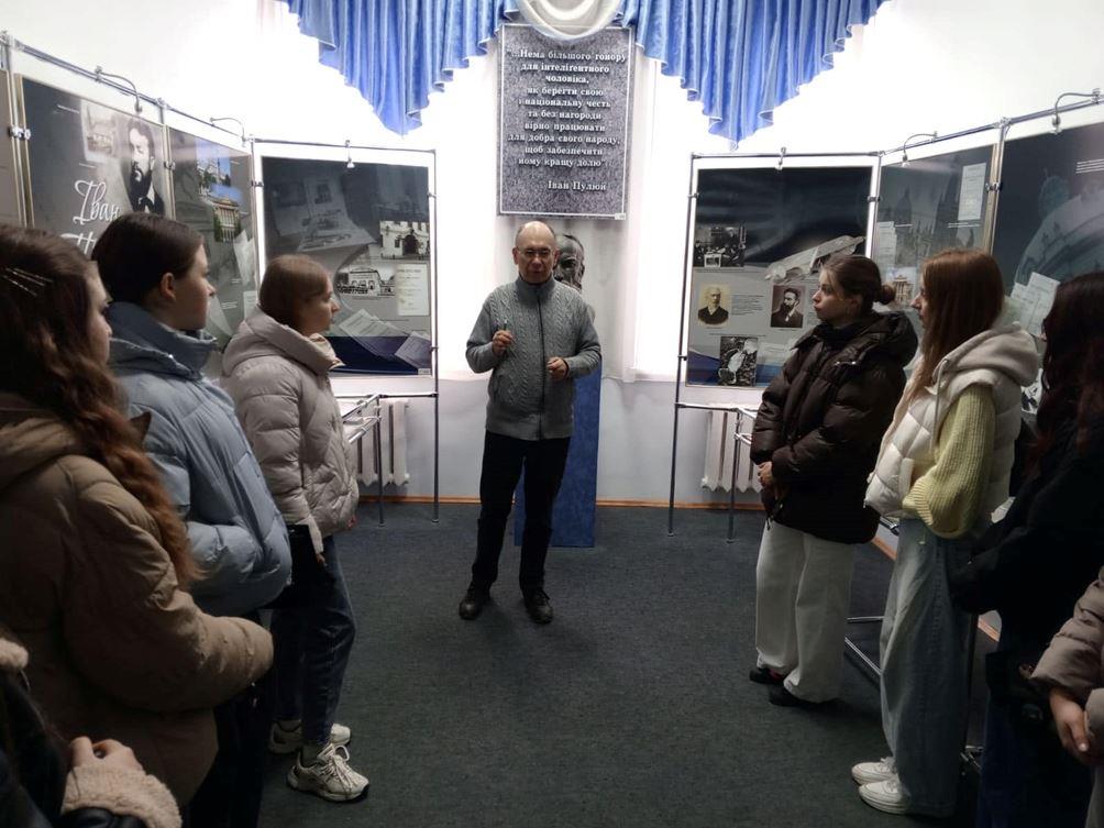 Під час екскурсії, яку проводив к.т.н., доцент кафедри інжинірингу машинобудівних технологій Лазарюк Валерій Володимирович, учасники ознайомилися з життєвим шляхом і науковими здобутками видатного вченого, фізика та винахідника, ім’я якого з гордістю носить наш університет. Експозиція музею відображає багатогранну діяльність Івана Пулюя – його дослідження у галузі електрики, рентгенівського випромінювання, перекладацьку та просвітницьку працю. Відвідування музею стало важливим і пізнавальним досвідом, який поглибив знання студентів про історію української науки та її визначних постатей, історію управління.
